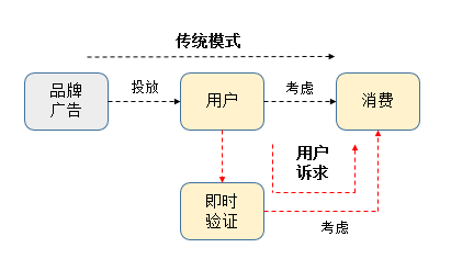 传统模式:用户先通过广告接受品牌,然后考虑是否消费