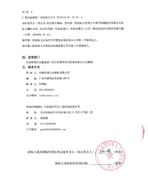 32t桥式起重机项目中标候选人公示