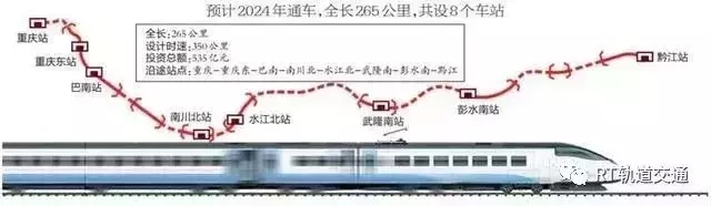 主要建设线路起自重庆站,经巴南、南川、武隆、彭水,终至黔江站,正线全长265公里,设站8座,其中新建6座。同步建设重庆东动车所动车出入段线、重庆枢纽东环联络线。项目投资估算总额为535亿元,本项目由渝万铁路公司作为项目业主负责项目实施,项目建设工期5年半。