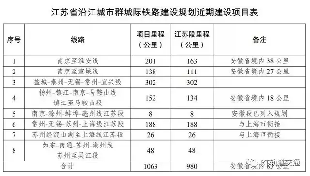 江苏省沿江城市群城际铁路建设规划(2019-2025年),按照网络布局,有序建设一批城际铁路项目。近期规划建设南京至淮安、南京至宣城等城际铁路项目,其中江苏省内总里程约980公里。近期建设项目江苏段投资约2180亿元。