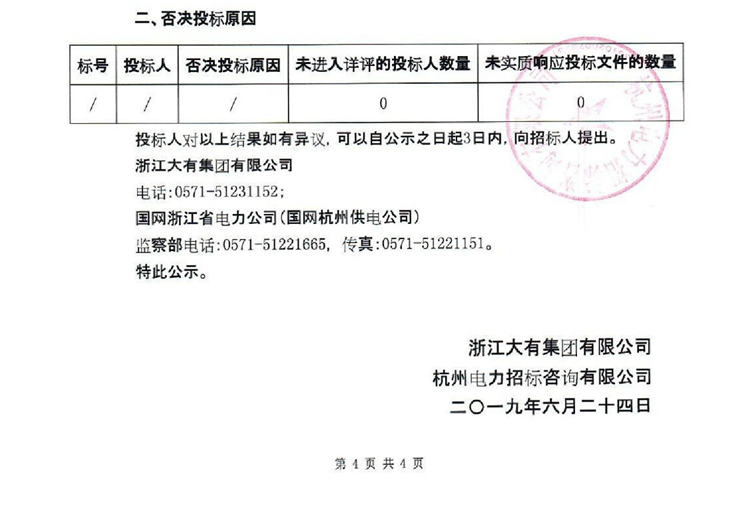 移动版:浙江大有实业有限公司电力建设分公司2019年度第一批起重运输及钢板租赁公开采购项目中标候选人名单及否决投标原因公示