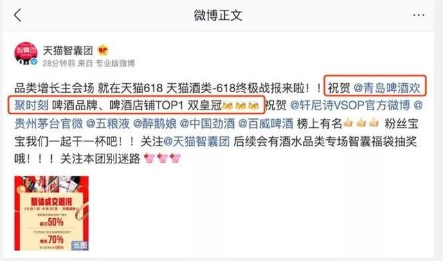 移动版:乐收生意宝讯:天猫酒类618战报公布,黑马青岛啤酒表现亮眼