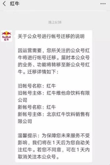 在5月13日晚上,红牛维他命饮料有限公司官方公众号开始迁移,公众号主体变更为北京红牛饮料销售有限公司。