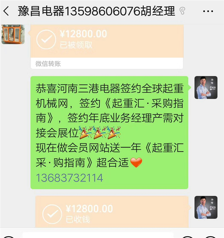 恭喜河南三港电器签约全球起重机械网,签约《起重汇·采购指南》,签约年底业务经理产需对接会展位!