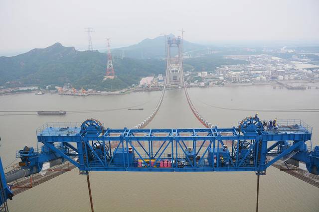 9月16日晚6时,镇江五峰山长江大桥南北两岸四台缆载起重机全部吊装完成。至此,标志着镇江五峰山长江大桥,即将进入中跨钢梁架设阶段。