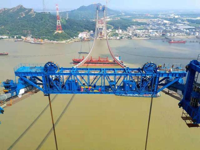 镇江五峰山长江大桥南北两岸四台缆载起重机全部吊装完成!