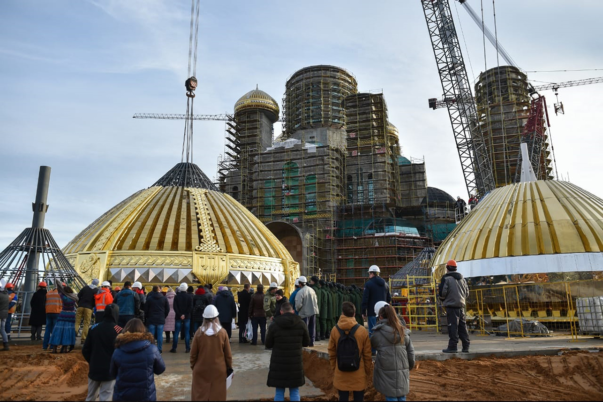 俄罗斯陆军大教堂吊装80吨重的穹顶