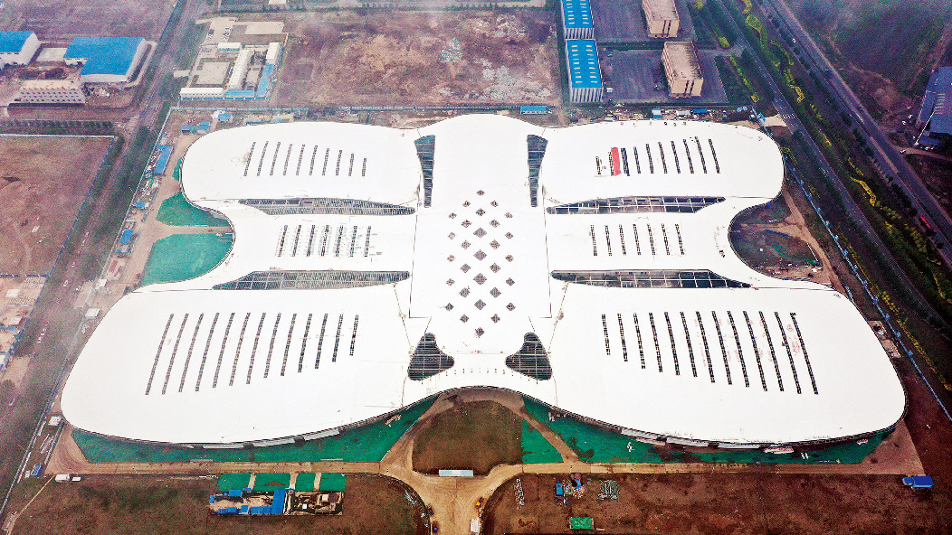 6日,俯瞰东北亚(长春)国际机械城会展中心,犹如一只振翅的蝴蝶。该项目位于长德经济开发区,总占地面积21万平方米,总建筑面积13.5万平方米,计划总投资20亿元。目前,项目建设正稳步推进。项目建成后将成为全国最大的机械展销综合体。( 来源: 长春日报张扬摄)