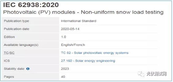 6月5日,IEC专家组发布了一项新的标准:IEC 62938,特别针对光伏组件的户外雪压承载能力做了新的规定。