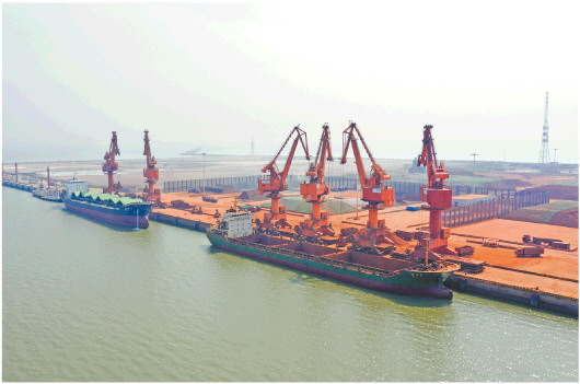 目前,滨州港已经建成了东、西两条防波堤,17公里集疏运通道和3万吨级航道;建成投入运营2个3万吨级散杂货码头、2个3万吨级液体化码头。同时,6#和7#泊位工程(结构预留五万吨级)、9#泊位后方陆域形成工程、管廊支架(一期)工程等项目正在推进中。项目建成后,不仅在有集疏运通道的基础上丰富了运输方式,更提高了港口通过能力,也为促进临港化工产业发展提供有力保障。