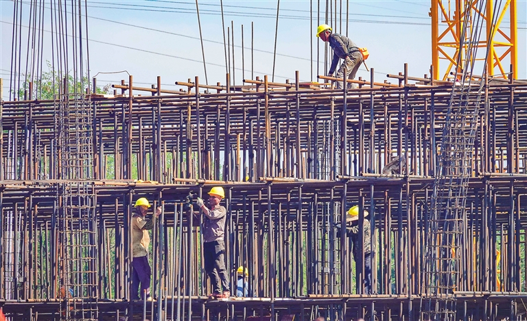 7月13日,在洋浦经济开发区保税港区标准厂房建设现场,工人们正同步推进厂房主体结构、厂区土地平整和道路施工等工作。洋浦保税港区标准厂房于今年6月开建,在相关部门的协助下,项目部大力弘扬“快、准、实、好”作风,采用加人工、加机械、协调建材提前进场等超常规举措加快项目进度,预计9月底建成投用。据了解,洋浦保税港区标准厂房工程项目总投资约1.6亿元,占地面积64.97亩,总建筑面积约4.6万平方米。项目建成后,将为入驻洋浦保税港区企业提供生产、办公场所,进一步改善保税港区配套设施,持续优化洋浦营商环境。海南日报记者 陈元才 摄