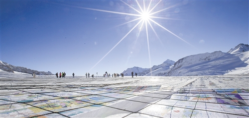 一张面积约2500平方米的世界最大明信片在瑞士少女峰下亮相,旨在唤起人们对全球气候变化的关注。 新华社记者 徐金泉摄