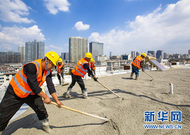 9月11日,工人在太原老军营小区施工。新华社发(武将 摄)