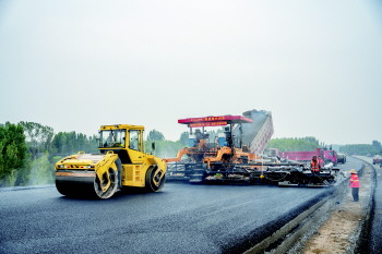 同时施工的还有跨日兰高速南侧至终点路段的沥青铺设。在现场,一台大型沥青摊铺机正在紧张作业,施工人员用专业工具检测摊铺厚度,4台压路机则对刚铺完沥青的路面进行压实。施工人员告诉记者,这台摊铺机是全幅作业施工,可对整个路面一次性沥青摊铺,“这样就减少了中间的纵向接缝,保证了路面的平整度。”