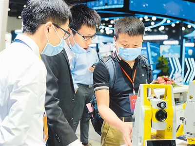 测量机器人是本届地理信息产业大会上的明星展品。记者 孙亚慧摄