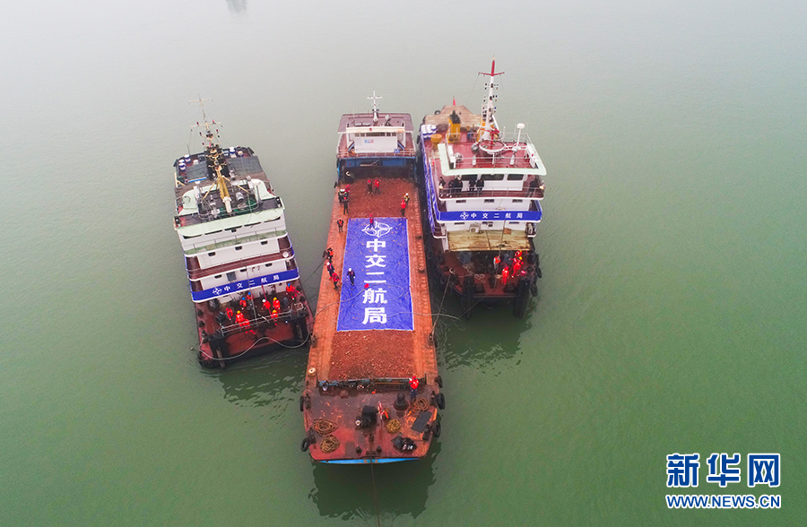 2019年12月25日,宜昌伍家岗长江大桥开启先导索过江施工。新华网发 雷伟利摄