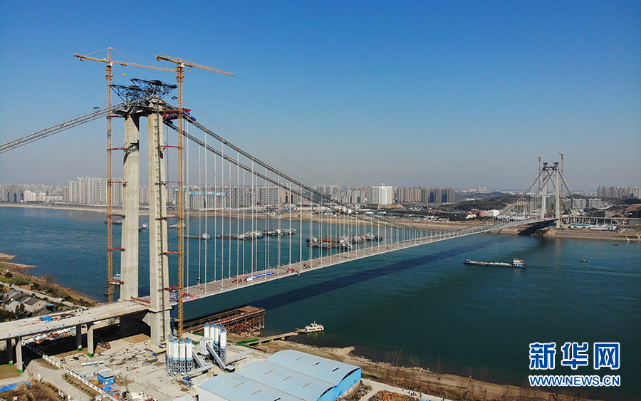 2019年9月,宜昌伍家岗长江大桥主塔封顶。新华网发 雷伟利摄