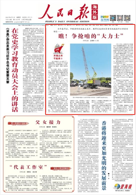 4月1日《人民日报》(海外版)头版聚焦中联重科