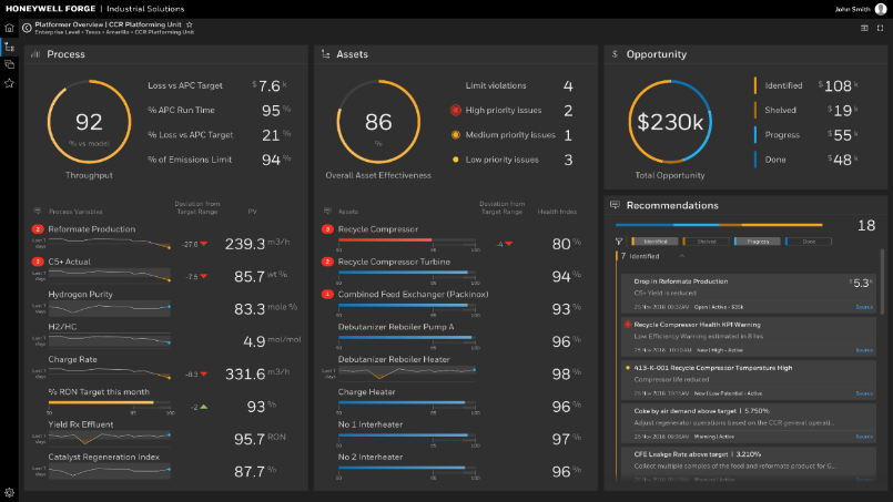 在生产过程和设备关联的基础上,霍尼韦尔智能工厂解决方案能够部署在云端或当地数据中心,为客户提供基于设备与过程的智能分析,该解决方案把炼油流程的实时机理模型,运用到了智能工厂里面,帮助客户更加直观、高效地了解工厂的操作优化路径。