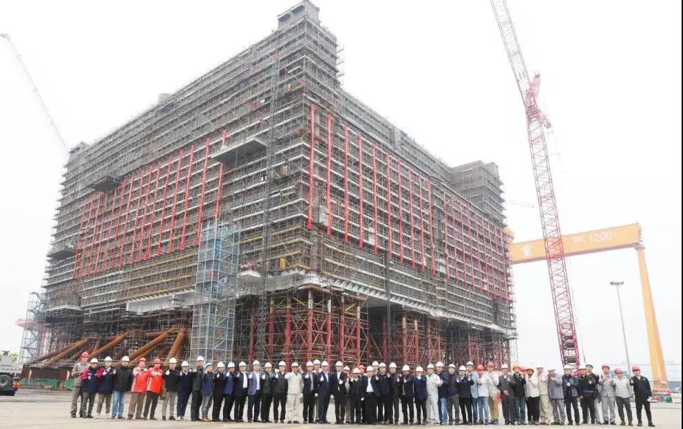 出席封顶仪式的有三峡新能源公司、中广核新能源公司、三峡建工集团、中国船级社等单位领导,中南电力电网工程公司副总经理、如东海上柔直工程项目经理周国梁应邀出席了海上换流站平台封顶仪式。