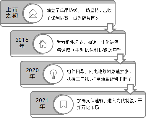 其在发展之初,确立了单晶路线之后,一路坚持,击败了保利协鑫,成为光伏巨头。