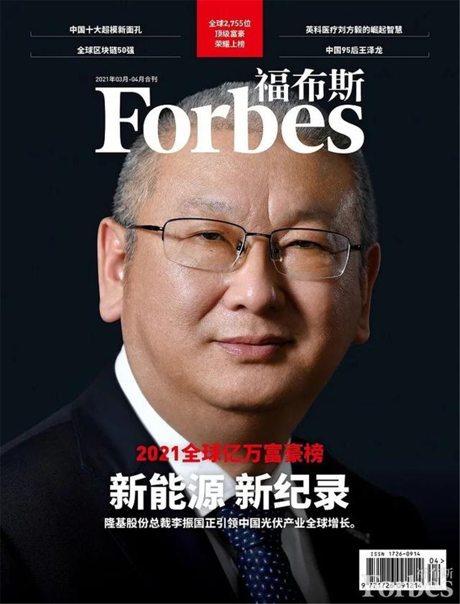在交货量和国内资本市场这两方面的成功也使其创始人跻身于全球最成功的商业领袖行列。其董事长李振国(身家105亿美元)是三位登上2021年福布斯亿万富豪榜的隆基股东之一,同时上榜的还有隆基早期董事李春安(58亿美元)和投资者陈发树(持股价值17亿美元)。隆基的股价在过去一年里上涨了三倍,推动其市值水涨船高,如今已接近500亿美元。