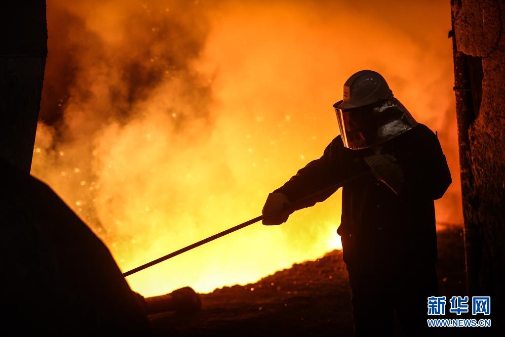 工人在鞍钢集团鞍钢股份炼铁总厂三号高炉忙碌(4月20日摄)。新华社记者 潘昱龙 摄
