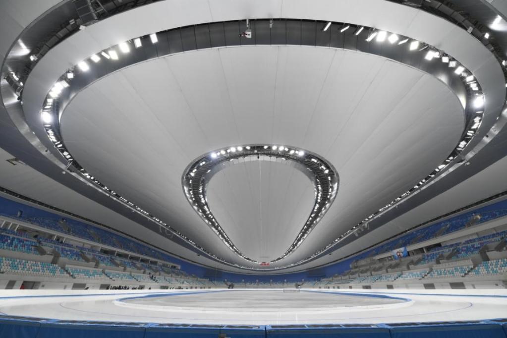 北京冬奥村、首钢滑雪大跳台、国家速滑馆有效节约施工空间,减少了拆改带来的建材浪费、能源消耗。其中,国家速滑馆的单层双向正交马鞍形索网结构屋面,有效降低了建筑物挑高,节约建材用量的同时减少了室内空间以及由此带来的能源消耗。北京冬奥村综合诊所、延庆冬奥村D6组团、五棵松冰球训练馆共计建成近5万平方米的超低能耗建筑示范工程。