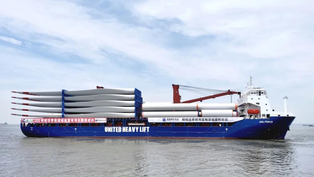 近日,装载远景能源EN-156/4.5和EN-156/3.3智能风机的运输船,分别从中国江苏常熟港和太仓港启航。6月底前,共计300多台远景能源智能风机将陆续从这两个港口发往越南。