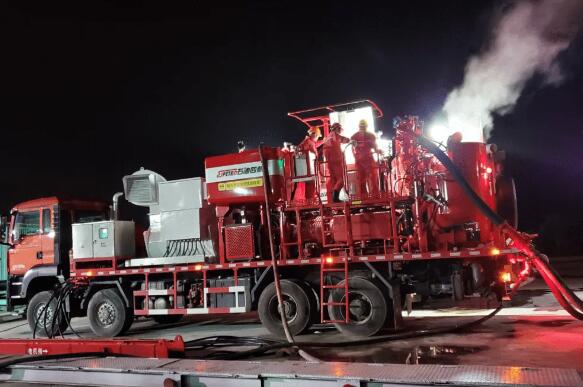 2020年6月28日,世界首台陆地电动固井车在四川威远页岩气田完成首口井固井施工作业,设备运行稳定,固井质量优良,工业试验取得圆满成功。