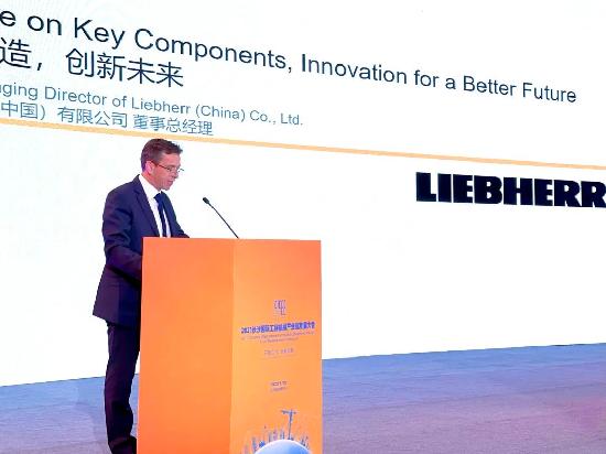 大会上,利勃海尔(中国)有限公司董事总经理Armin Natter那德明先生对中国工业的未来发表了自己的见解,他表示“乘着十四五的东风,我们在工程机械与绿色能源等领域看到更多机遇,对中国未来的发展更加充满信心。今年底,位于上海的利勃海尔中国新总部即将落成并投入使用,我们期待与本土优秀企业有更多合作,并为中国第二个百年的伟大目标贡献我们的一份力量!”