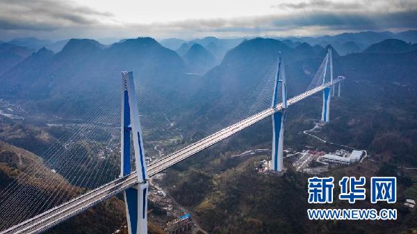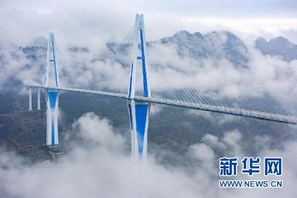 站在观景平台上,全长2135米的平塘特大桥尽收眼底。桥塔像三颗巨钉镶嵌在崇山峻岭之间,蓝白配色与天空交相辉映,时常云雾缭绕,宛若“天空之桥”飞架于山谷,因此得名。“天空之桥”不仅壮美而且高大,它中间桥塔高达332米,是世界桥梁中最高的混凝土塔。