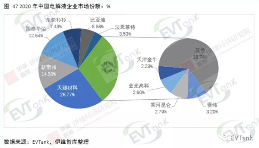 近日,研究机构EVTank联合伊维经济研究院共同发布了《中国锂离子电池电解液行业发展白皮书(2021年)》,白皮书数据显示,2020年全球锂离子电池电解液出货量达到33.4万吨,同比增长24.6%,整体市场规模达到152.7亿元。EVTank分析认为,2020年全球锂离子电池电解液出货量的增长主要来自于中国企业。