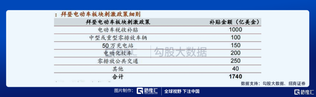 1、先是美国电动车刺激计划,早在5月18日,拜登参观了密歇根州迪尔伯恩的福特汽车厂时就其1740亿美元的电动汽车促进提案发表演讲,其中1000亿美元作为电动车税收补贴,105亿美元来建立50万充电站的资金,拜登在演讲中明确表示“汽车工业的未来是电动车”。