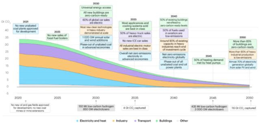IEA对光伏发电也寄予厚望,在发布的碳减排目标上,表示在2050年,将要实现85%的建筑实现零排放;超过90%的重工业生产实现低碳;至少70的电力是来自于光伏和风电。