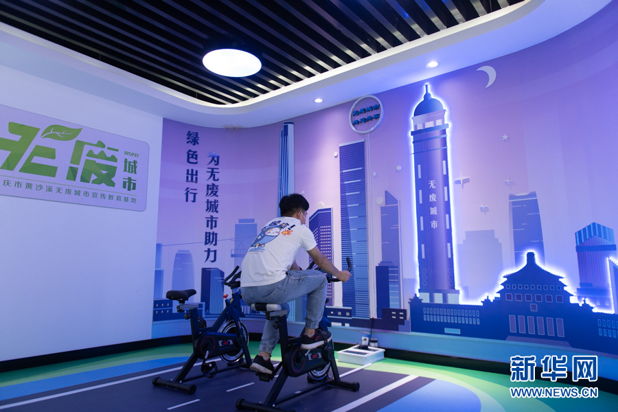 “六五”环境日前夕,重庆市首个“无废城市”宣传教育基地正式对外开放,图为绿色出行点亮城市展区。新华网 耿骏宇 摄