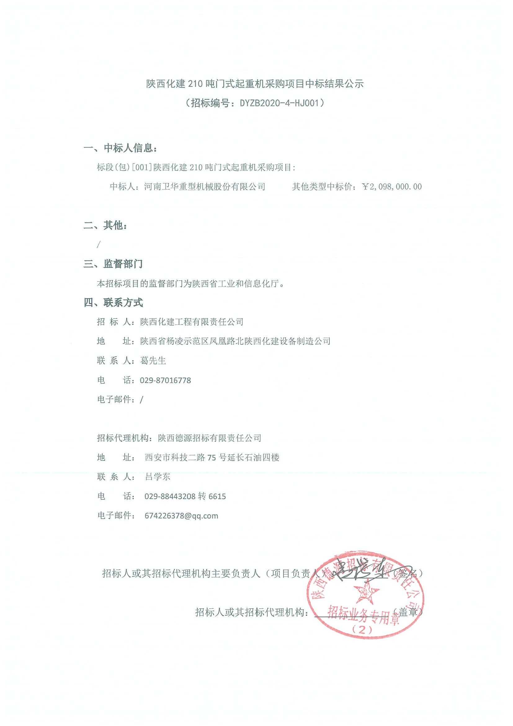 移动版:陕西:陕西化建210吨门式起重机采购项目中标结果公示