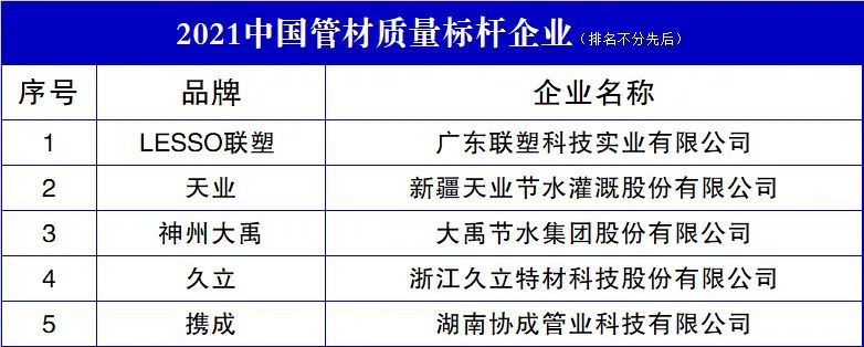 2021中国管材质量标杆企业