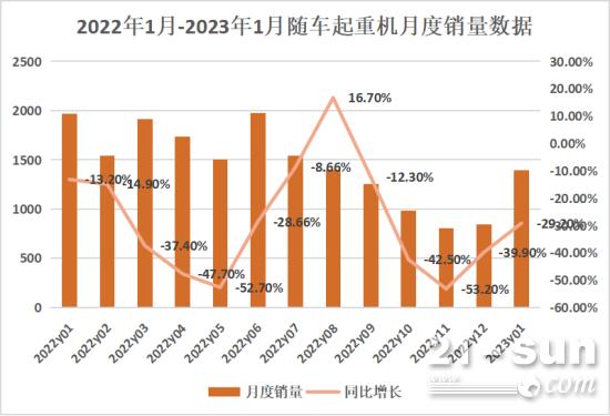 据我国工程机械工业协会对16家随车起重机制作企业计算,2023年1月当月出售各类随车起重机1393台,同比下降29.2%。