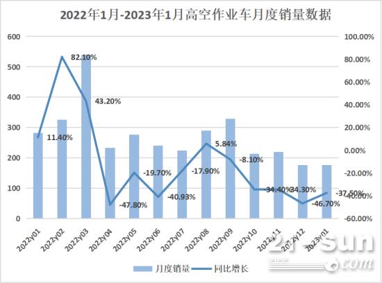 据我国工程机械工业协会对9家高空作业车制作企业计算,2023年1月当月出售各类高空作业车177台,同比下降37.5%。