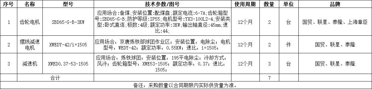 减速机中标公告