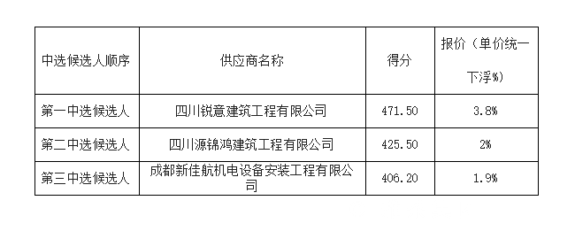 1.根据综合评分法,我单位确定四川锐意建筑工程有限公司成为本次采购项目的中选供应商。