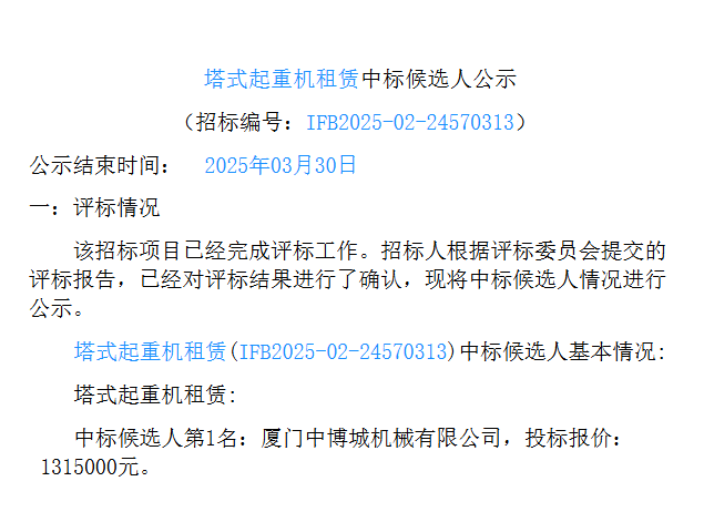 移动版:塔式起重机租赁中标候选人公示