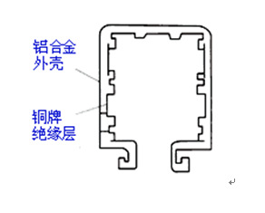(一)结构型式:供电安全滑触线导管由铝合金外壳(金属型)、塑管外包铝合金外壳(复合型)、塑导管、导电器、中间连接器(供电器)、端盖(端部供电器)与其它附件组成。导管形状成方形、拼合形。