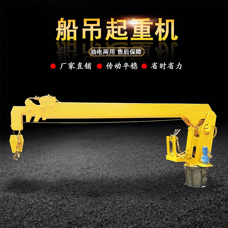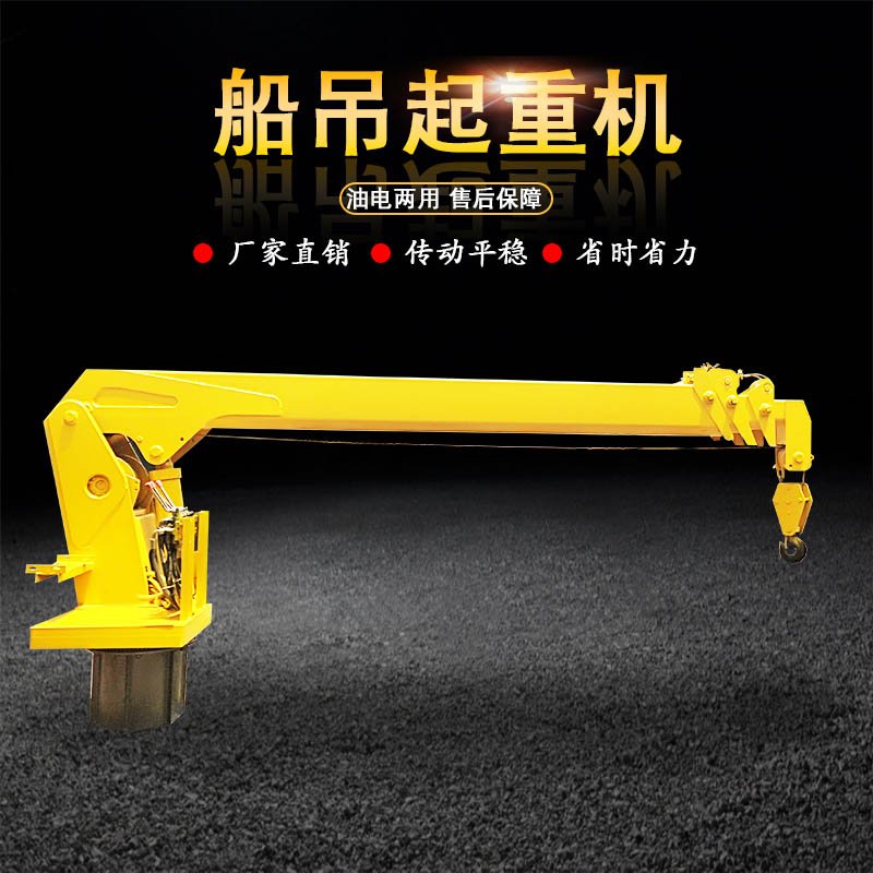 根据客户的需求定制直臂,折臂,伸缩式对接方便用户安装;吊机结构合理,简单高效,船用吊机可广泛用于厂矿、车间、仓库、船舶、码头等固定行走处;