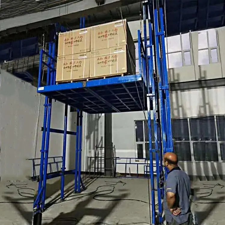 导轨式液压升降货梯一种非剪叉式液压升降货梯,是使用非常广泛的货物垂直运输设备。它通过电机驱动油泵,依靠油缸驱动重型链条带动液压升降货梯平升降,由于采用液压作为升降动力,具有载重量大,升降平稳等特点,广泛应用于建筑高层之间货物垂直运送,液压升降货梯用于建筑物层高间运送货物的专用液压升降台产品主要用各种工作层间货物上下运送;立体车库和地下车库层高间汽车举升等。产品液压系统设置防坠、超载安全?;ぷ爸?,各楼层和升降台工作台面均可设置操作按钮,实现多点控制。产品结构坚固,