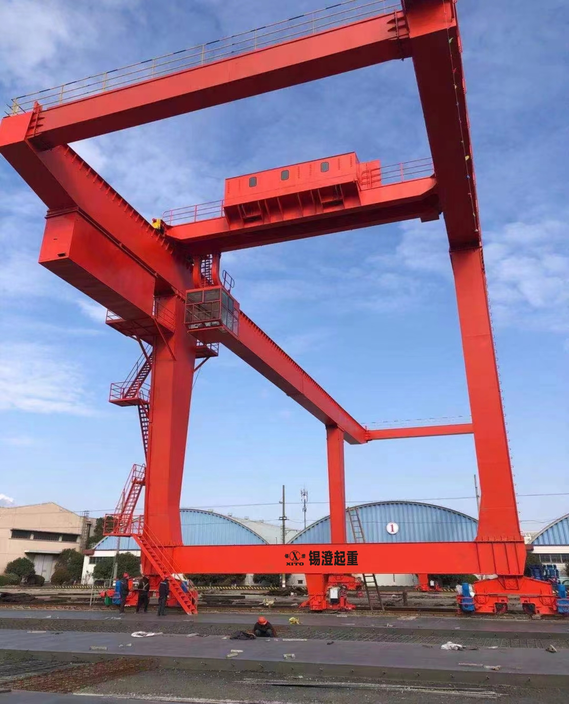 门式起重机是桥式起重机的一种变形,又叫龙门吊。主要用于室外的货场、料场货、散货的装卸作业。门式起重机具有场地利用率高、作业范围大、适应面广、通用性强等特点,在港口货场得到广泛使用。