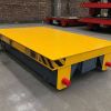 南昌电动平车厂家,低压电动平车是36V低压轨道供电电动平车,以轨道滑触线供电,轨道即作为车轮的行走轨道又兼做馈电轨。分为36v单相供电、三相供电。地面降压变压器控制柜将单相(三相)交流380V降压至单相(三相)36V,经轨道滑触线馈送给平车,再经车载升压变压器升压为单相(三相)交流380V。给平车用单相电容电机提供电力(三相时为YZ起重冶金用电机)。由于行走轨道又兼做馈电轨,所以要求轨道之间,车轮和车体之间绝缘,轨道铺设时要做特殊的绝缘处理